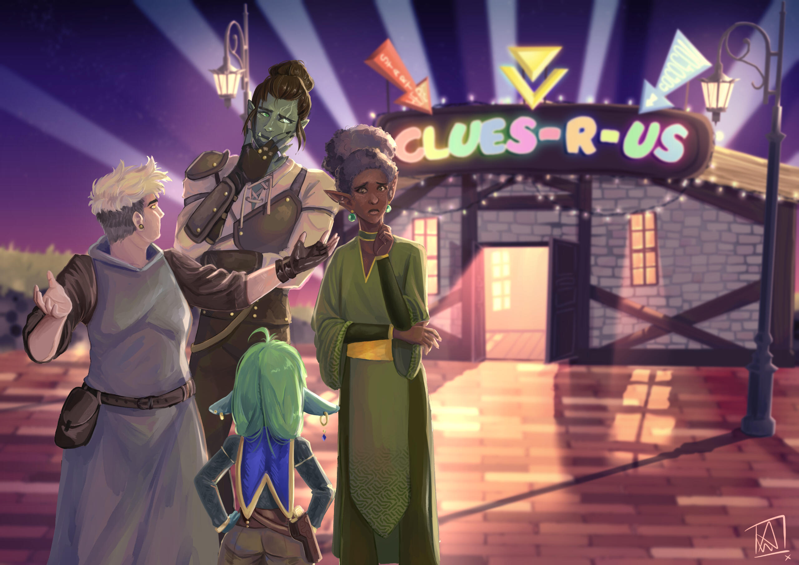 Explore the systems, mechanics, and tropes that make up a good playable mystery! Killers & Clues is the flagship issue of the Unbound Zine, chock-full of whodunnits and pointers to keep your table puzzling. If you love a good mystery or three, this is the issue for you!I Illustrated a half page Illustration for this Zine, a more comical piece about how to guide your party without railroading them